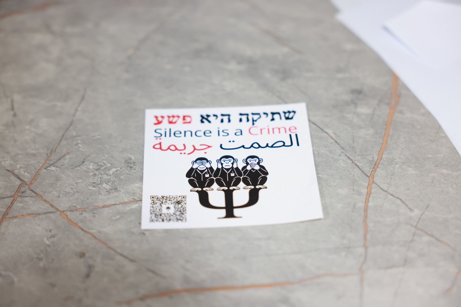 Silence Is a Crime – An initiative of mental health professionals organizing against the war. The group was formed during the war out of a need to voice opposition to the killing and destruction from a professional standpoint, emphasizing the mental health consequences of the war on society. The group produced videos, published position papers, and organized demonstrations. The initiative was presented at the conference by Noor Abo Ras – a psychology intern, a former staff member at the School for Peace, and one of the conference organizers.
