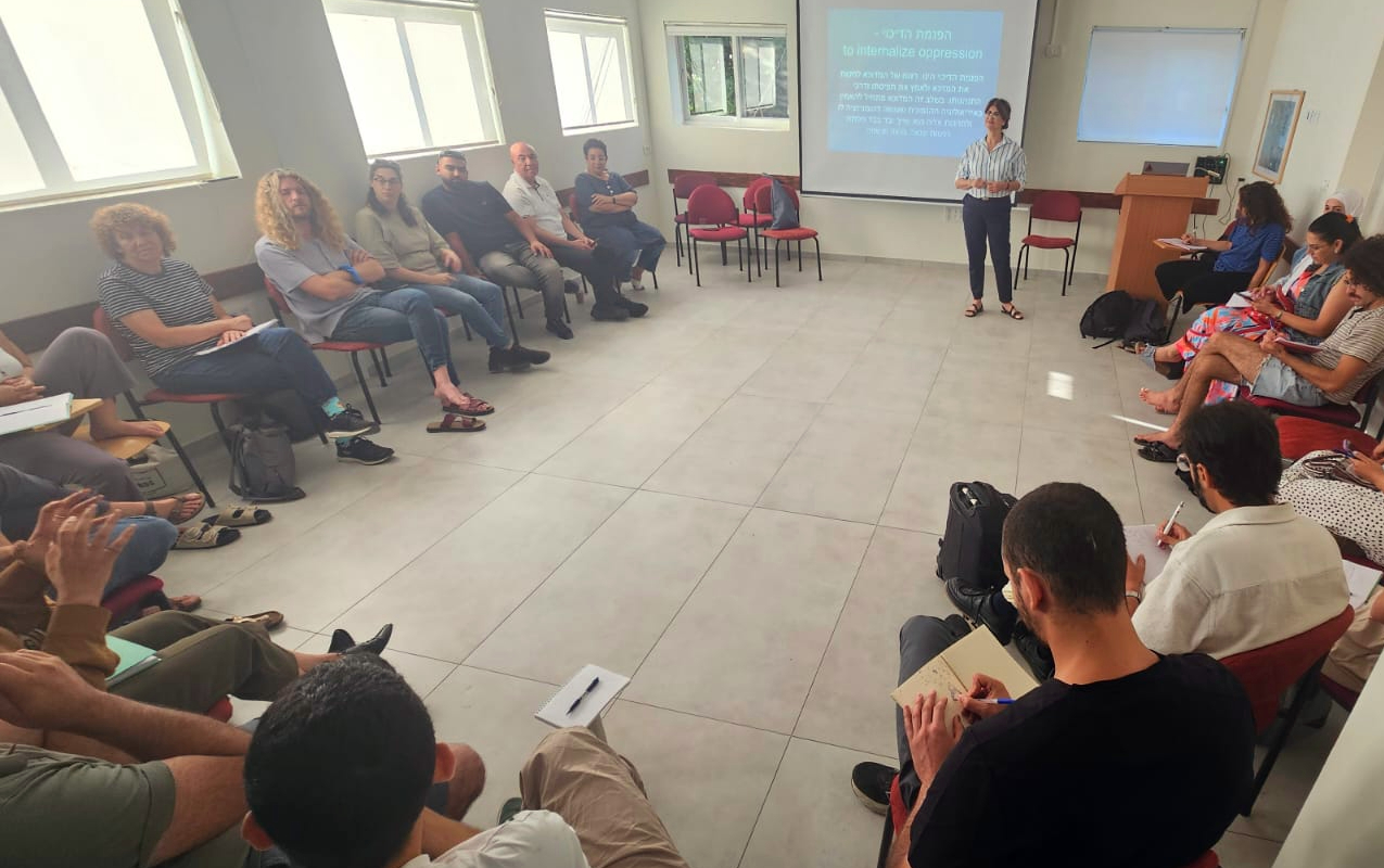 We began the weekend with a “Peer Facilitation” workshop: each pair of participants led a group discussion on a chosen topic. Afterward, they received feedback from their fellow participants and the course facilitators. Later, Dr. Maram Masarwa from Al-Qasemi Academic College gave a lecture on Paulo Freire, the father of critical pedagogy—a core educational and political foundation for the dialogue work at the School for Peace. Her talk deepened our understanding of power dynamics between the oppressed and the oppressors, and how dialogue and education can be tools for liberation. The first day ended with a social evening organized by the group, which helped strengthen the bonds between participants and process the day’s experiences.